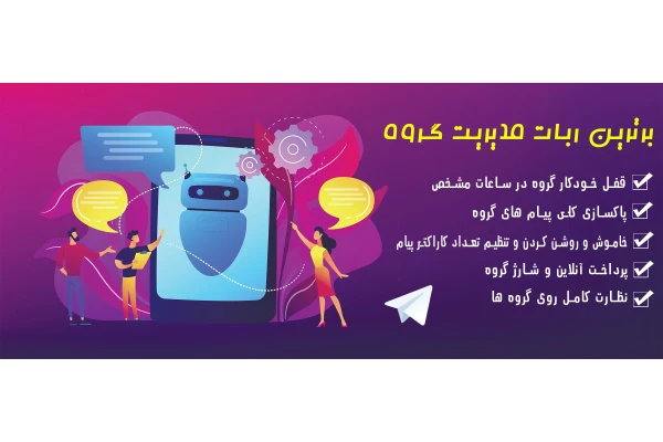 اگر شما به دنبال یک ربات مدیریت گروه با تمام امکانات و ویژگی های مدنظر خود هستید ما برای شما سورس ربات مدیریت گروه پیشرفته ای را آماده کرده ایم که میتوانید هم گروه ها و سوپرگروه های خود را به صورت کامل مدیریت کنید و هم از ربات خود درآمد کسب کنید.